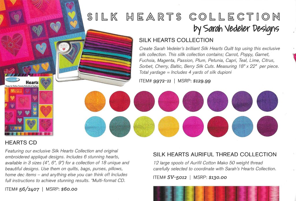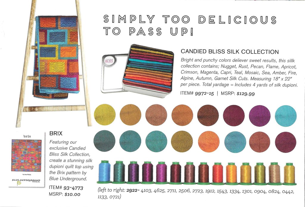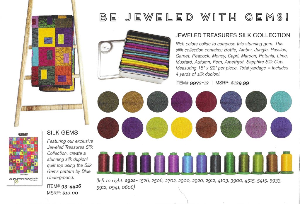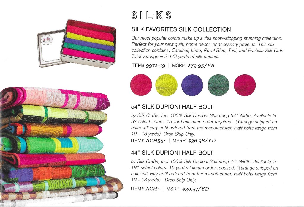 The catalog features 13 beautiful silk quilt kits that include everything you need to create stunning quilts including the silk, thread, and patterns.