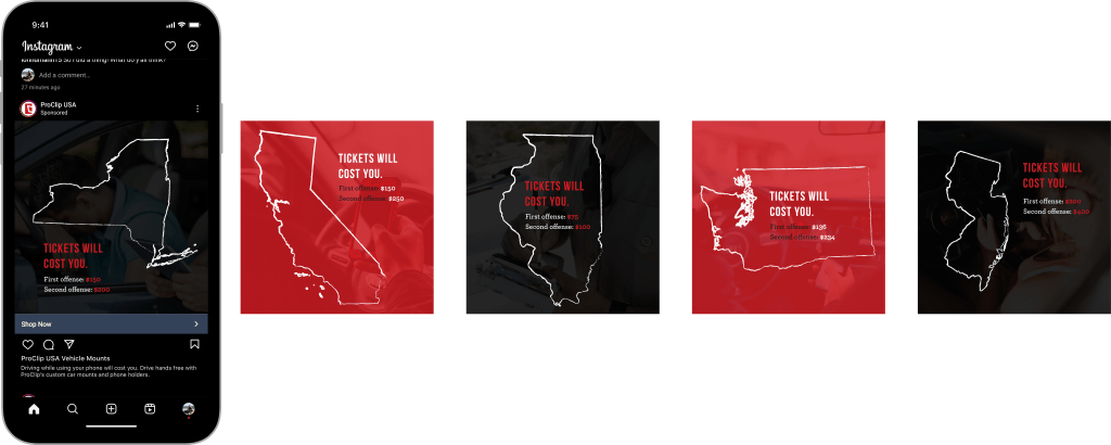 ProClip USA manufactures custom vehicle mounts and cell phone holders to perfectly fit your devices and keep them securely in place in your car. During market research, I learned people either fear injuring themselves or others by driving distracted and who worry about getting a ticket.