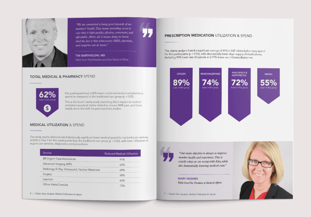 Study of Kiio’s impact on medical and pharmaceutical spend and utilization for WEA Trust’s low back pain members.